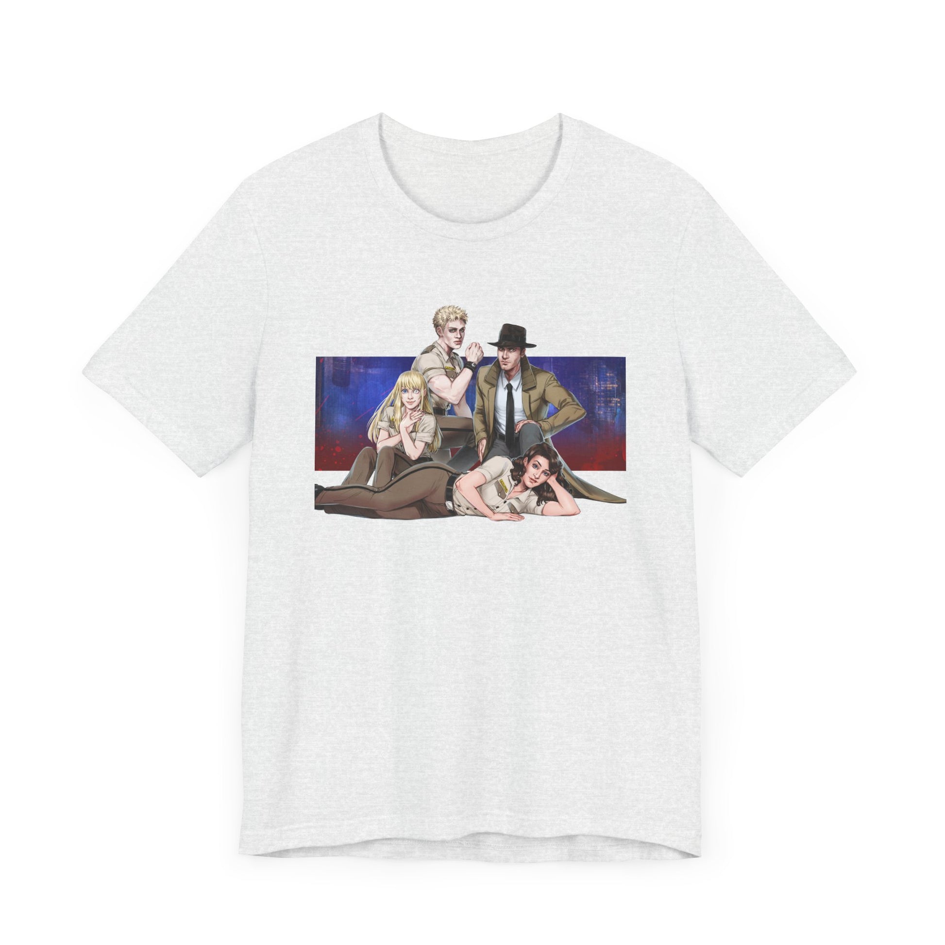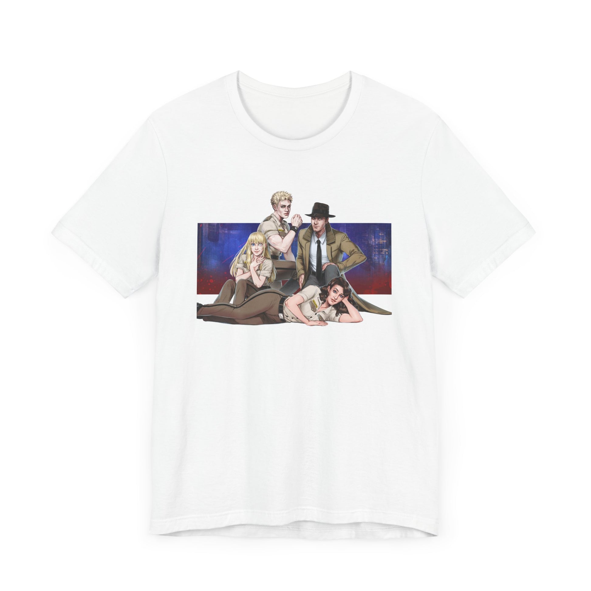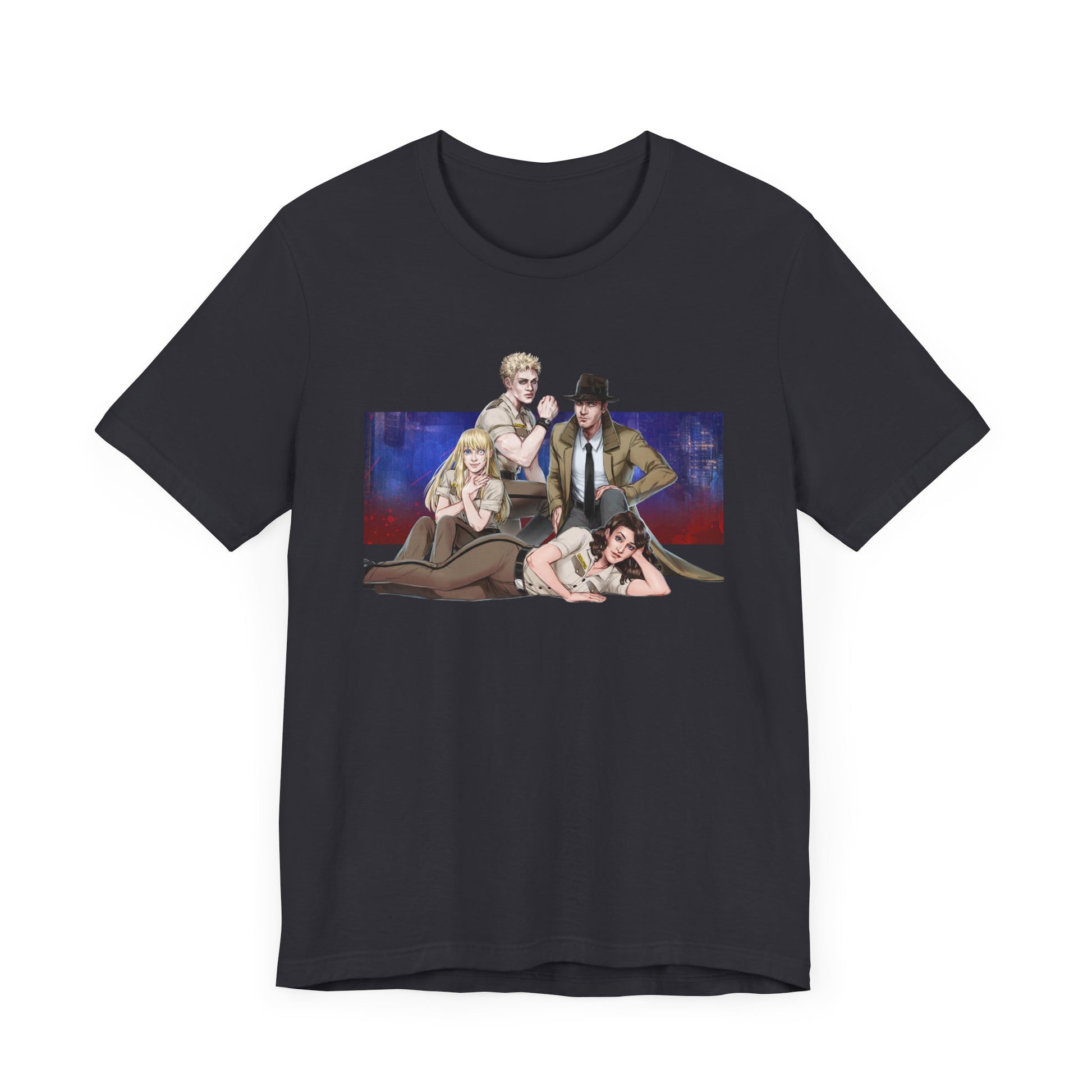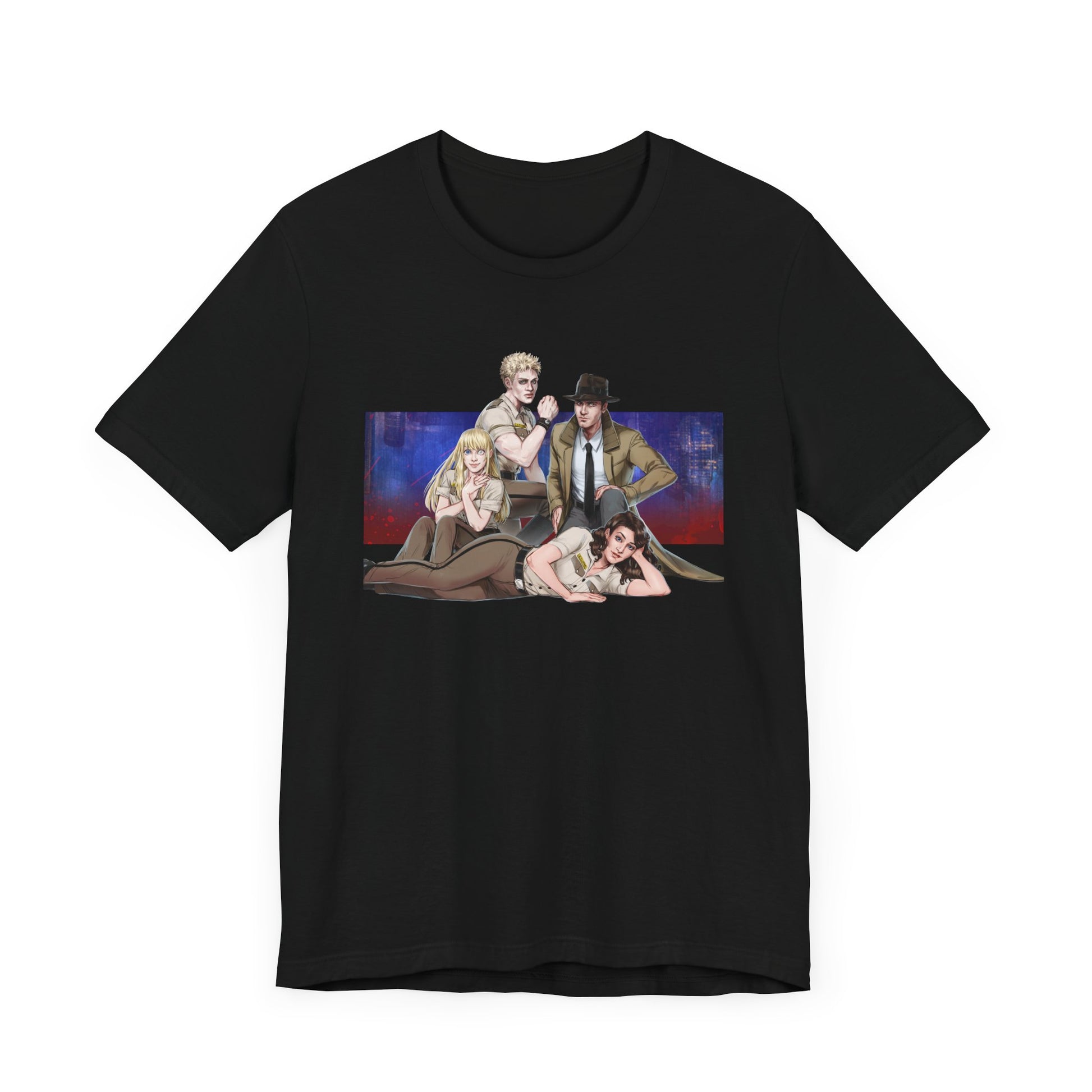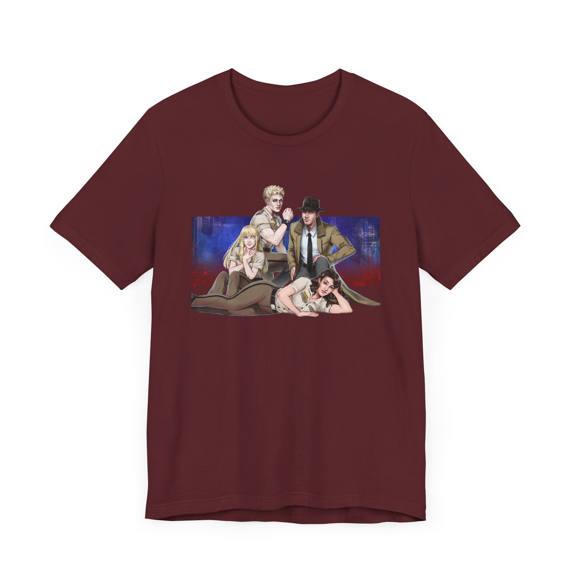 The New Haven Sherrif's Department Vampires doing their best Breakfast Club in front of a bloody inverted city skyline.