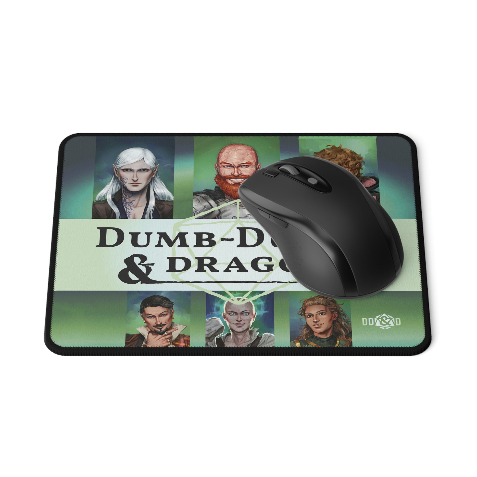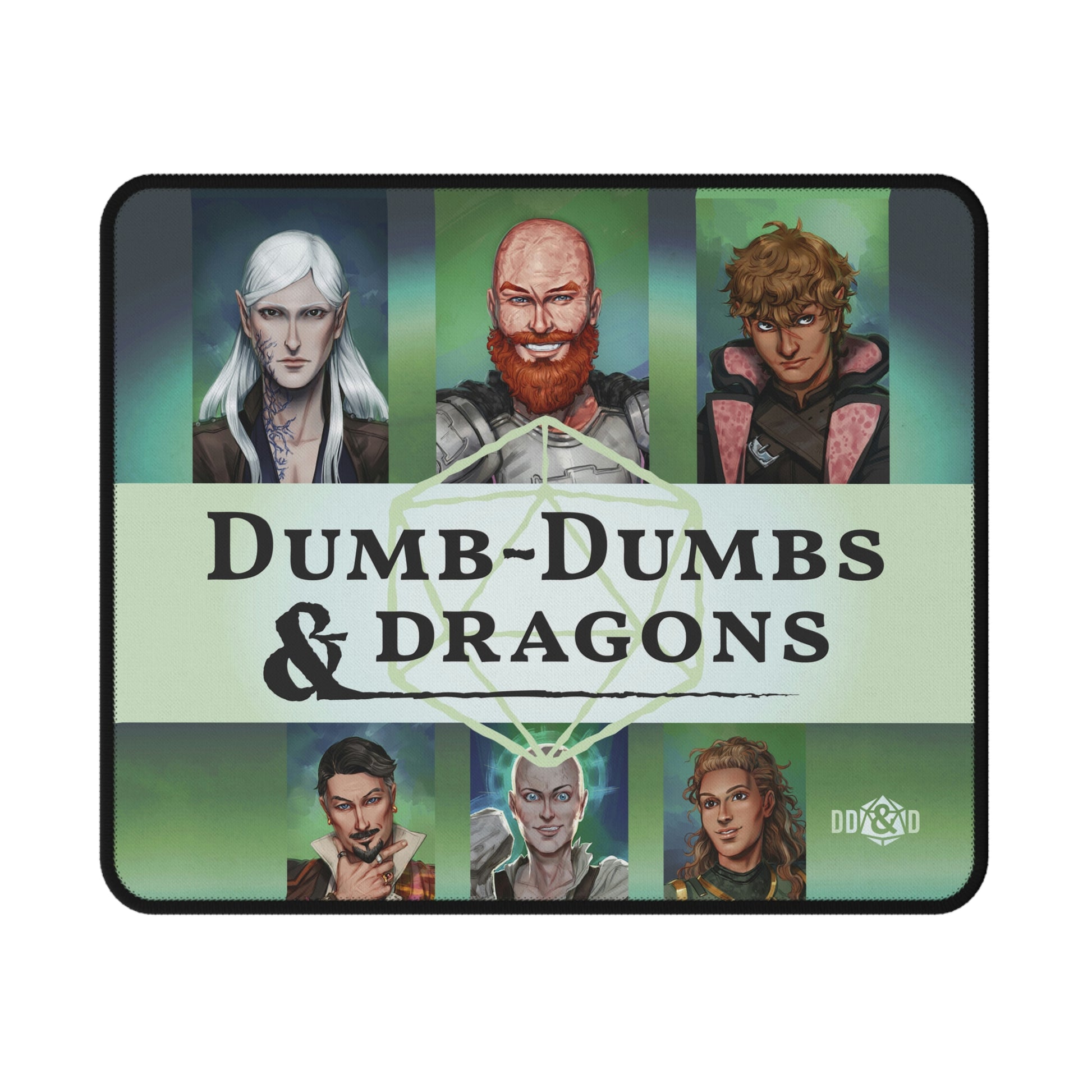 Keep the main Dumb-Dumbs & Dragons crew near you daily with this non-slip mouse pad!